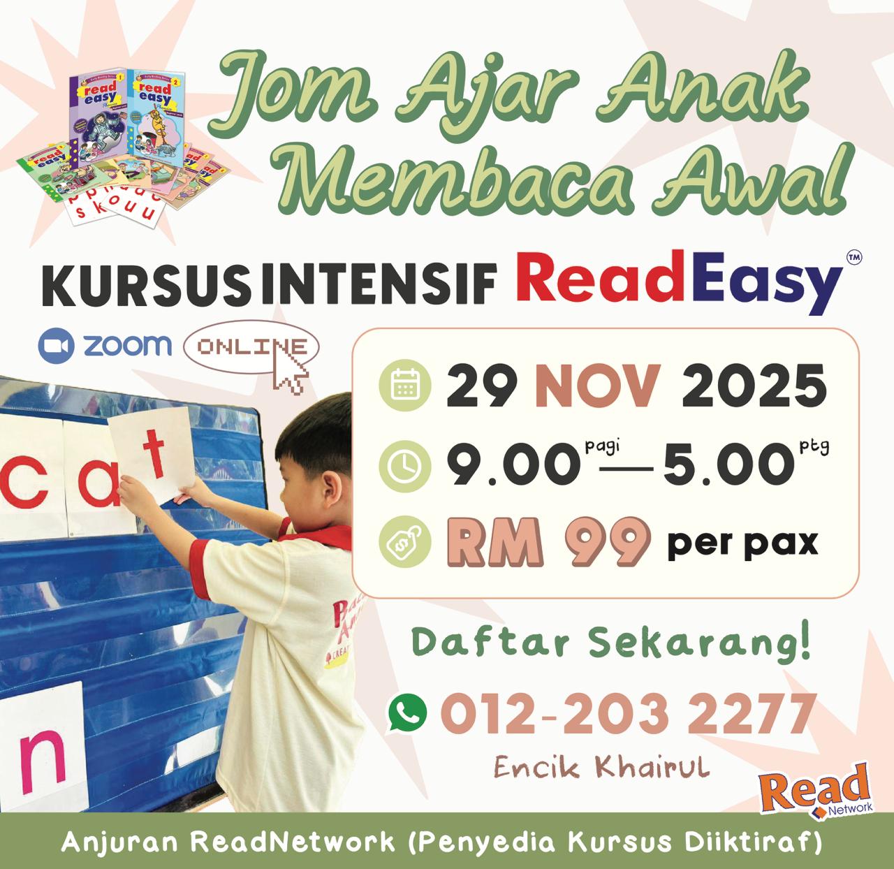 - Semua idea dan teknik mengajar yang dikongsi di dalam kursus ini adalah hak intelektual Readnetwork dan penulis buku. Tidak dibenarkan digunapakai untuk tujuan selain mengajar anak dan murid di tadika dan sekolah sahaja.